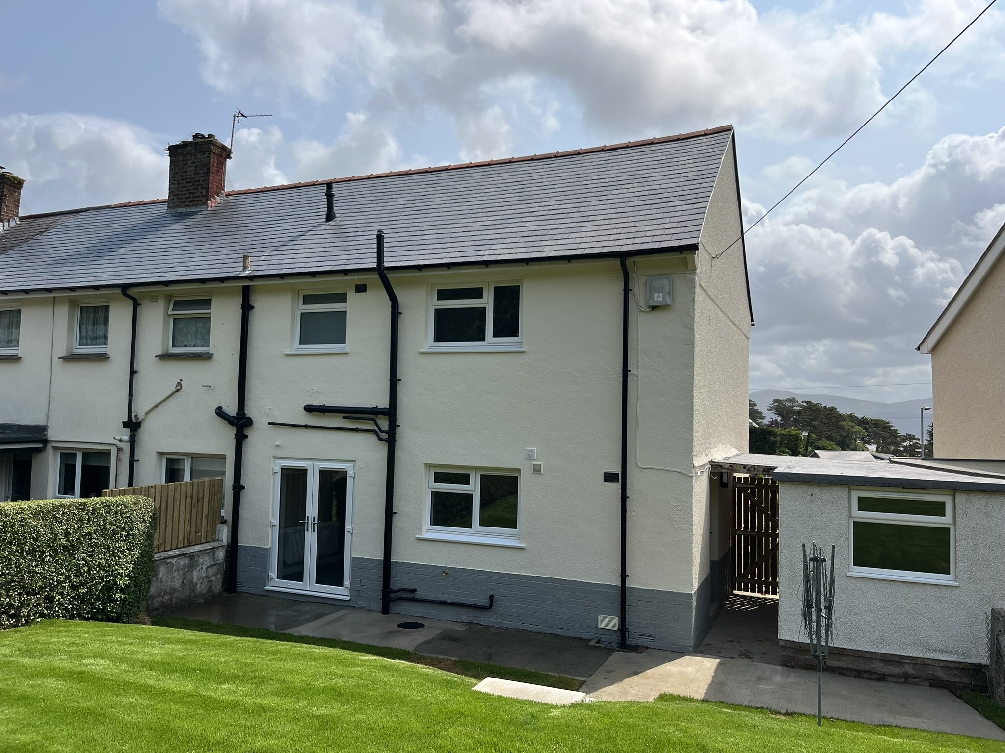 Externally, the property received extensive enhancements, including re-landscaped grounds with new fencing, gates, steps, and a turfed lawn. The external shed was rendered and fitted with new doors, while the property’s masonry and render were fully redecorated. Additional upgrades included the installation of new soffits and rainwater goods to ensure the property is protected and resilient for years to come.